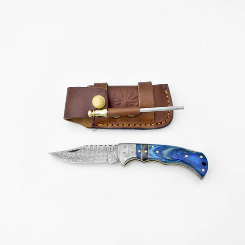 Titan Damascus Steel Bolster Belt Clip Pocket Knife