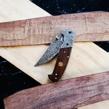 Titan Damascus Steel Black Burl Walnut Pocket Knife