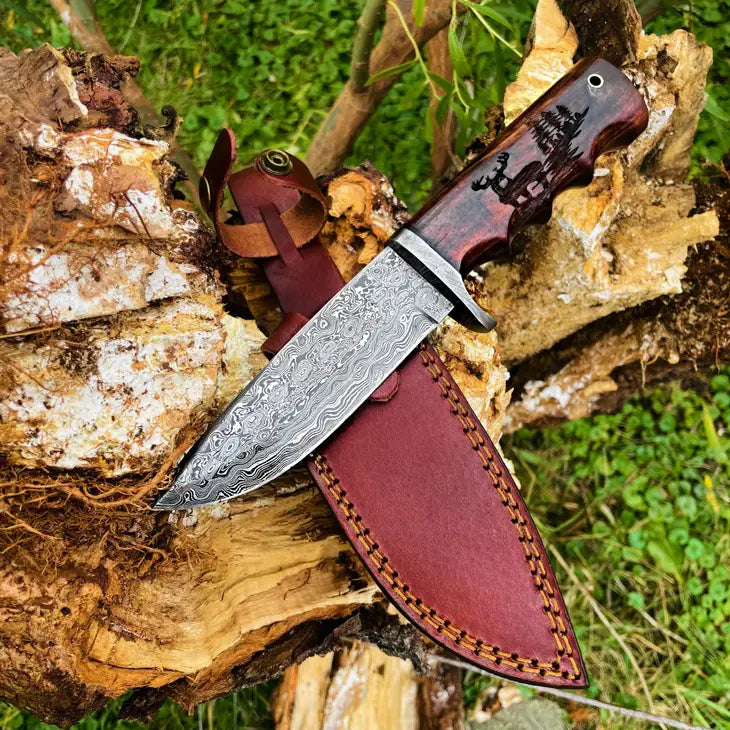 Hand-forged knife, Damascus knife, Drop- Style blade, Black Walnut Scales Hunting knife