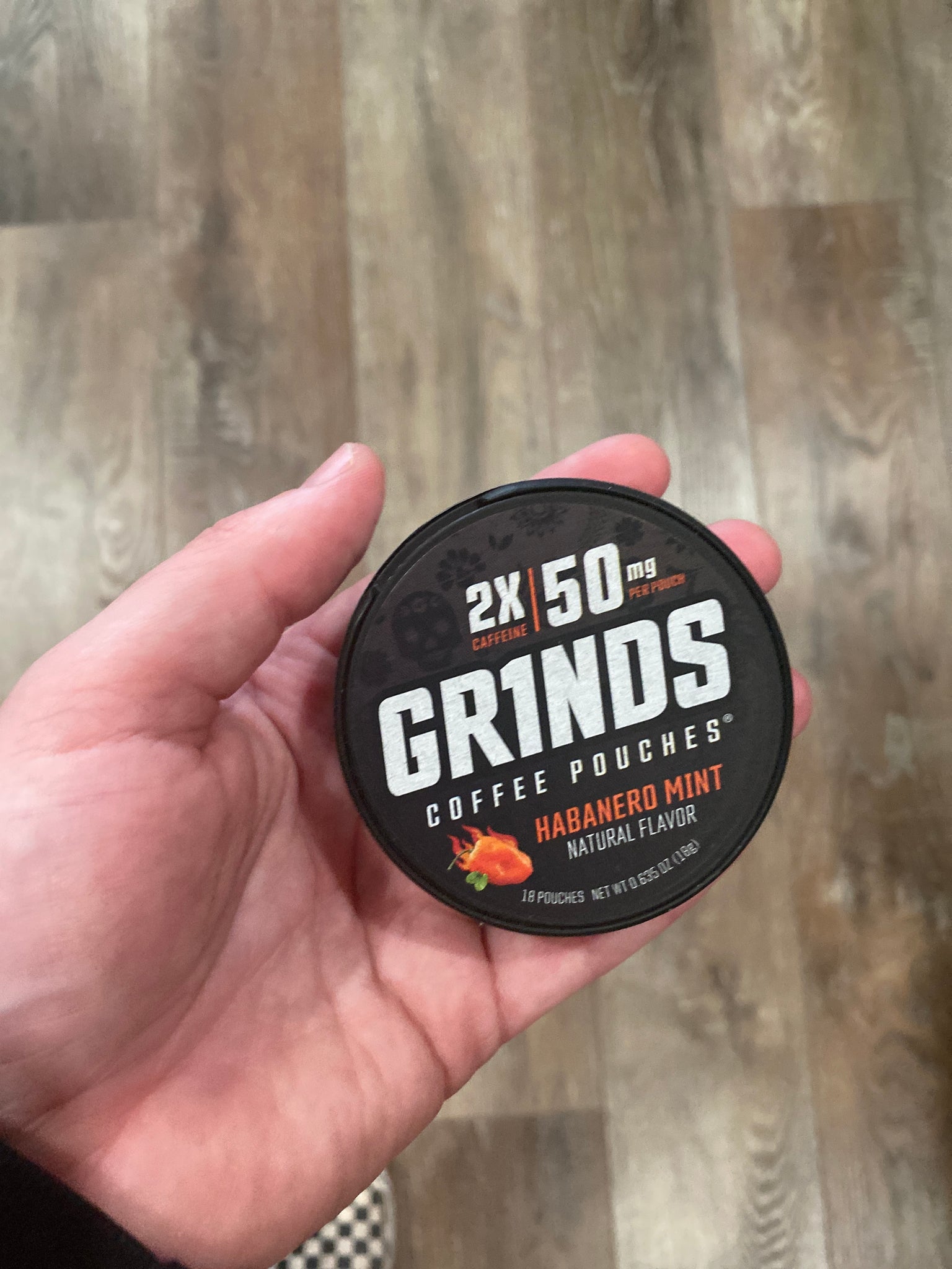 - Each Grinds pouch has enough caffeine for 1/4 cup of coffee, approximately 20-25mg of caffeine per pouch (each tin contains the equivalent of 4-5 cups of coffee!)